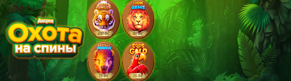Получите 20 спинов в Tiger Jungle по ставке 12,5 рублей на депозит от 1000 рублей.